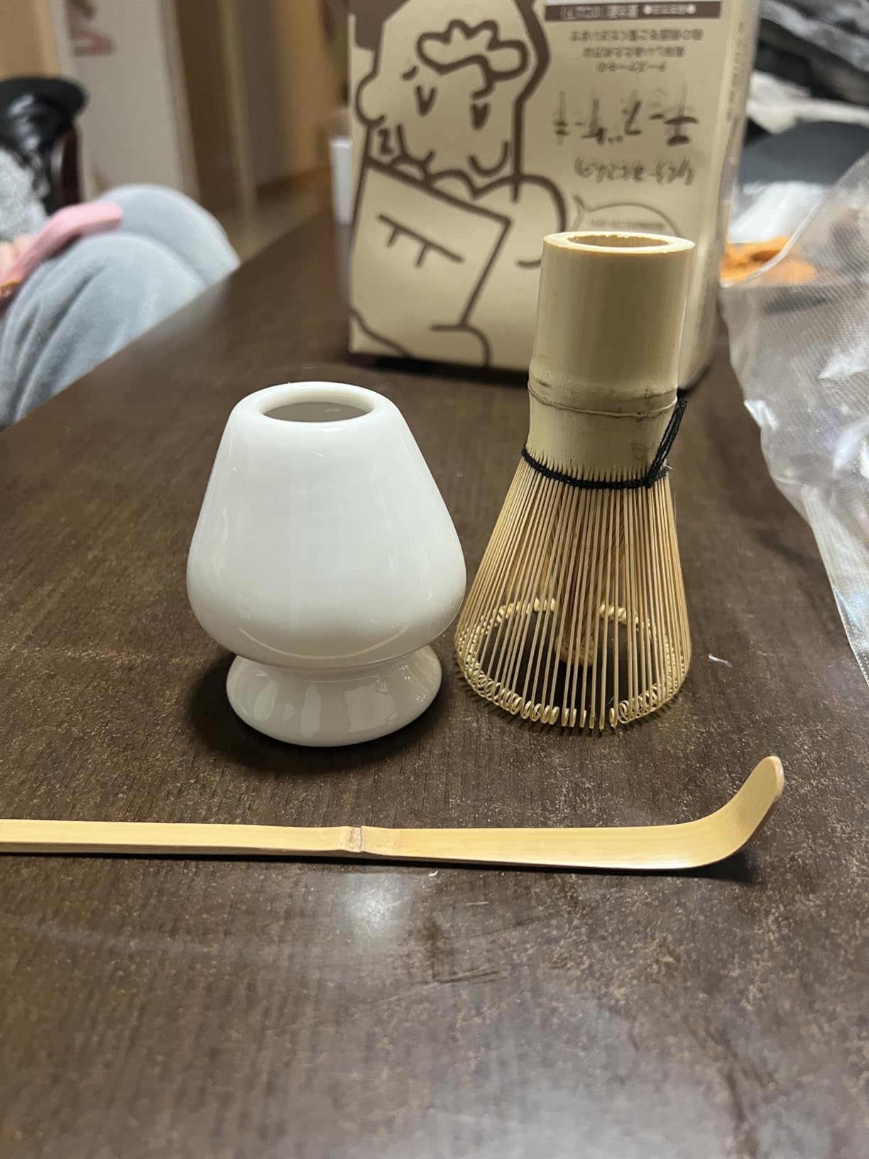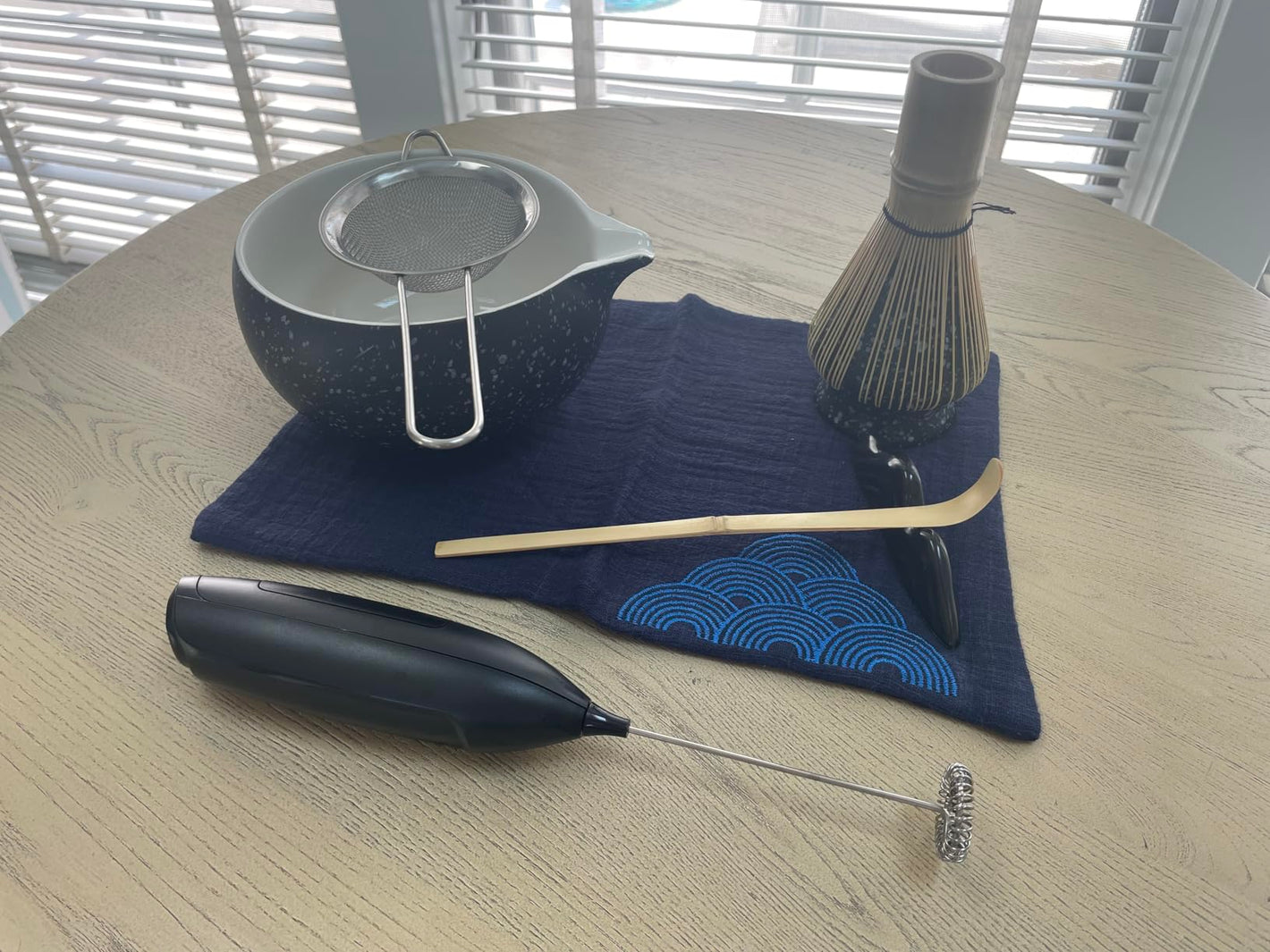 Une cuillère de poudre de matcha avec de l'eau tiède (non bouillante).